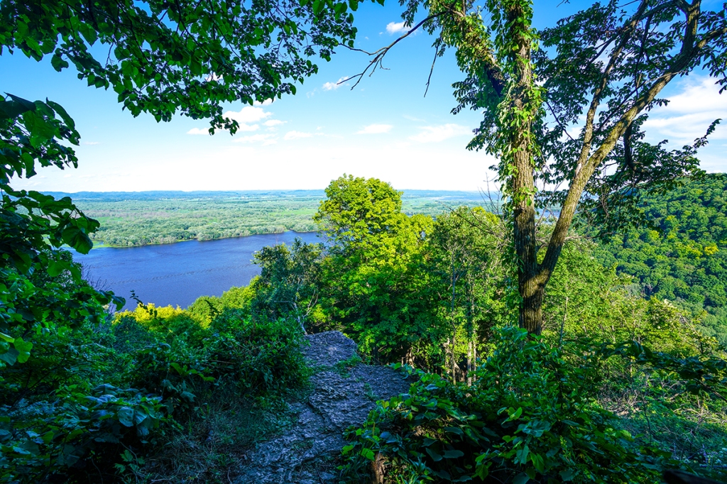 So it began. We left Chicago at 10 a.m. with the GPS showing us an ETA of 8:03 p.m. at Mitchell, South Dakota. Factor in diaper change stops, gas stops, and venturing out of the car for a scenic viewpoint; we knew 10-10:30 pm was the more realistic time frame. We chose this town since it wasn’t too close to Badlands National Park (204 miles), where overcrowding could be an issue, but close enough to drive over and get there in under three hours. We took I-90 West and made our first stop to explore the Minnesota side of the Mississippi River at Great River Bluffs State Park. We did a relatively short hike here with the kids and got panoramic views of the Mississippi River. The hike wasn’t challenging and was a perfect way to stretch out after being in the car for nearly five hours.