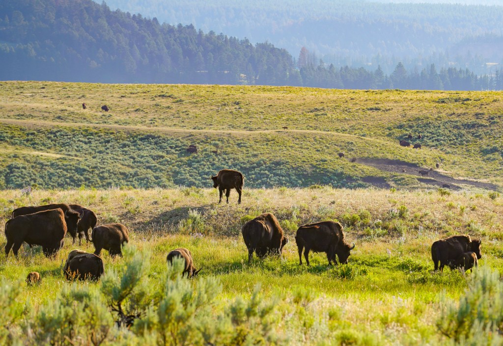 It’s important to note that seeing certain animals, such as bears and wolves, in Yellowstone does require patience. It’s not as simple as you drive there and the animals just show up. The longer you stay in Lamar Valley, the higher your chances. The more days you spend in Yellowstone, the higher the likelihood that you will see most, if not all, the animals. There is a 20-mile stretch of Lamar Valley, which we drove back and forth several times. It took about two hours before we saw our first bear. Bison and elk are plentiful; you can count on seeing them with minimal effort. We spent the entire day here and were rewarded for it. Bring plenty of food and water if you plan on doing the same. Also, remember to bring binoculars. One crucial tip: bison may look docile, but if you get too close, they will charge and try to gore you. People get hurt every year trying to get too close to take that perfect picture. Giving them their space is a great idea, especially if you see calves.