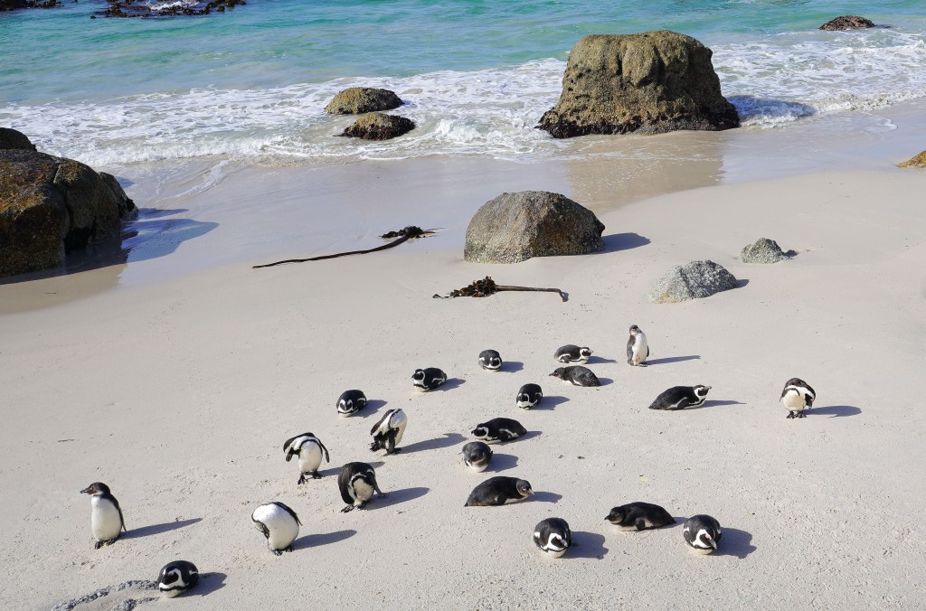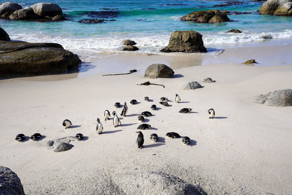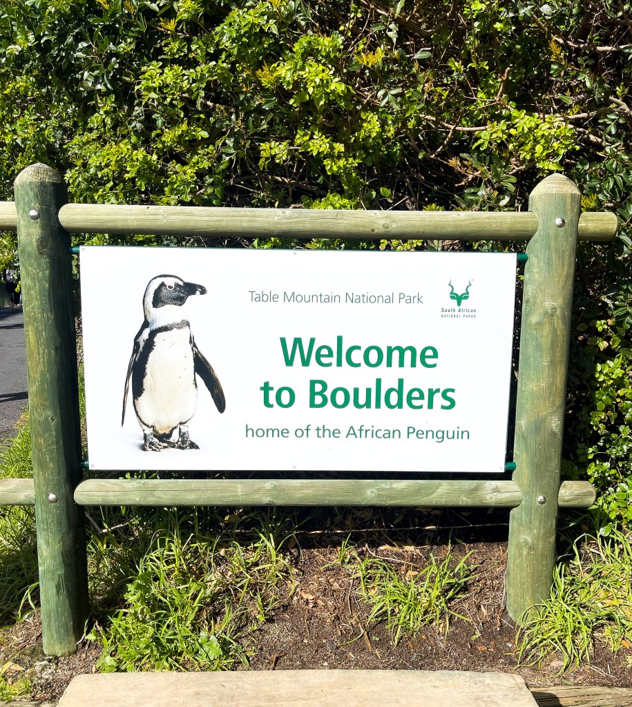 Once we concluded with breakfast, we started our day by driving along the shore down to Boulders, part of Table Mountain National Park. Boulders is home to a thriving colony of African Penguins. They’re fun to watch, and the kids had a blast observing them. They’re still wild, and as tempting as it may be, there are clear warning signs that you should not pet or touch them. The chicks have greyish fur that eventually turns black and white as they mature. A fenced boardwalk leads you to Middle Beach, where you can swim and get closer to penguins. We went in July, winter in South Africa, although a sweater was sufficient to keep us warm.