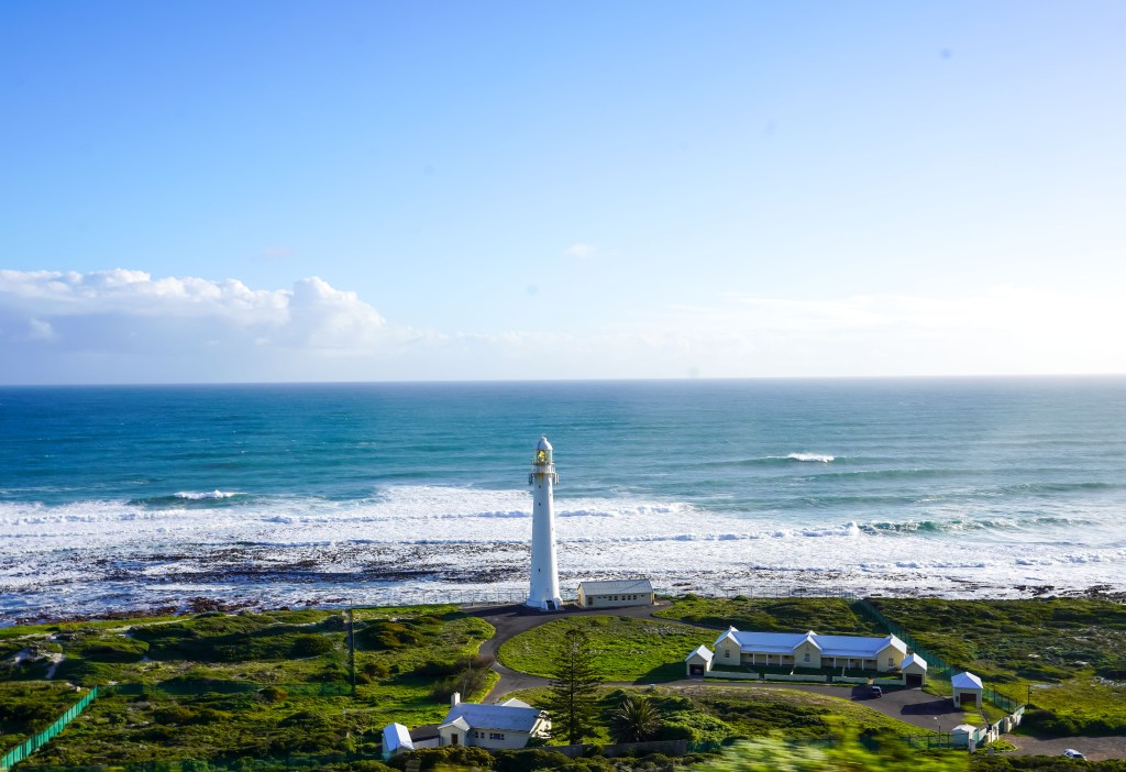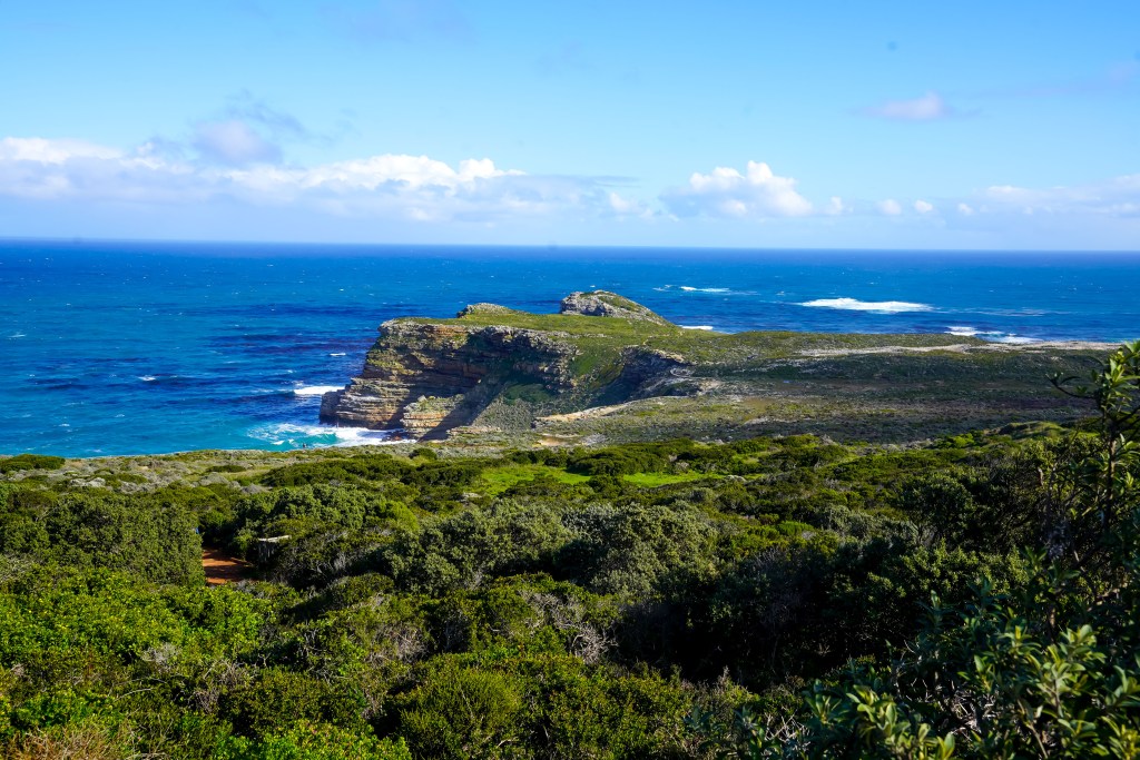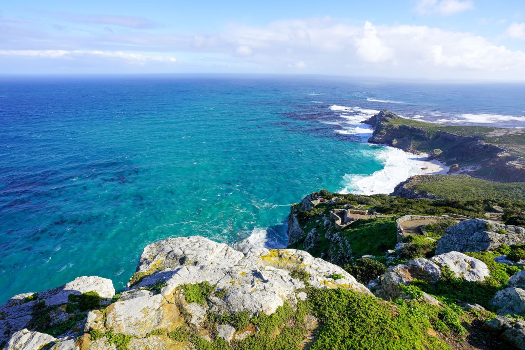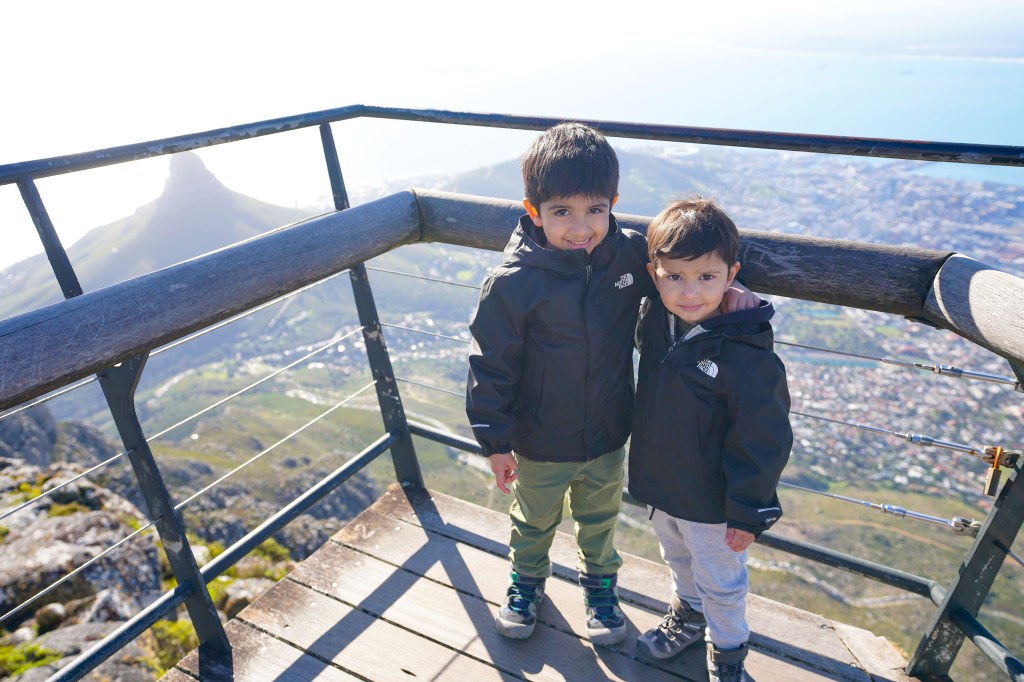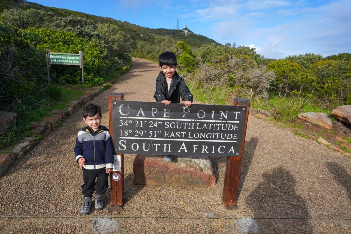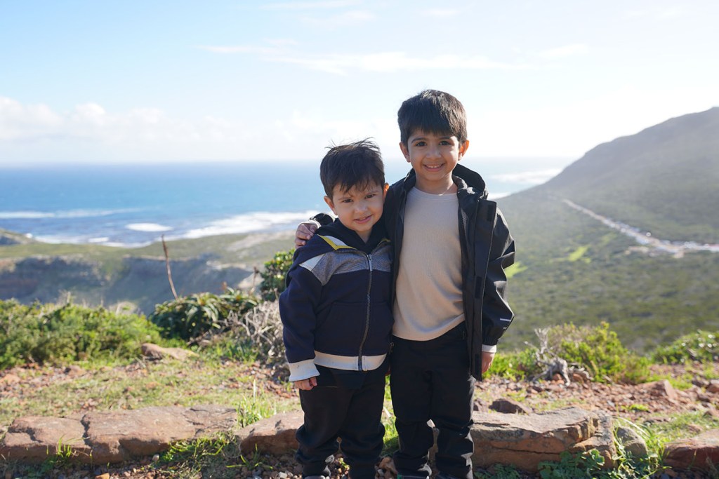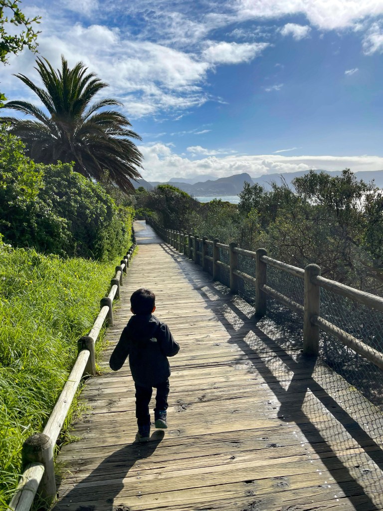 Following Boulders, we drove south to Cape Point, part of the Cape of Good Hope Nature Reserve. Tickets to enter this nature reserve cost about twenty dollars (USD) and about ten dollars for kids 2-12. The promontory has stunning cliffs, ocean views, and a few hiking trails. You can take The Flying Dutchman Funicular from the parking lot to an area right below the Old Lighthouse or do the short but primarily uphill walk. Tickets for the funicular only cost about four dollars, but the wait can be very long. The walk going up is kid-friendly, and my two older sons (ages four and three) were able to walk up and back. Two Ocean’s Restaurant is adjacent to the parking lot, offering splendid views of the cliffs and the ocean. When walking up the paved trail, be cautious of baboons along this path. They can be very aggressive, and if you have a bag that’s not secured, they will try to snatch it in search of an easy snack. I also don’t recommend carrying your passport when visiting Cape Point, as people have had bags containing passports taken by the baboons. The parking lot is a hotbed for baboon activity, and YouTube has several videos of them causing trouble.