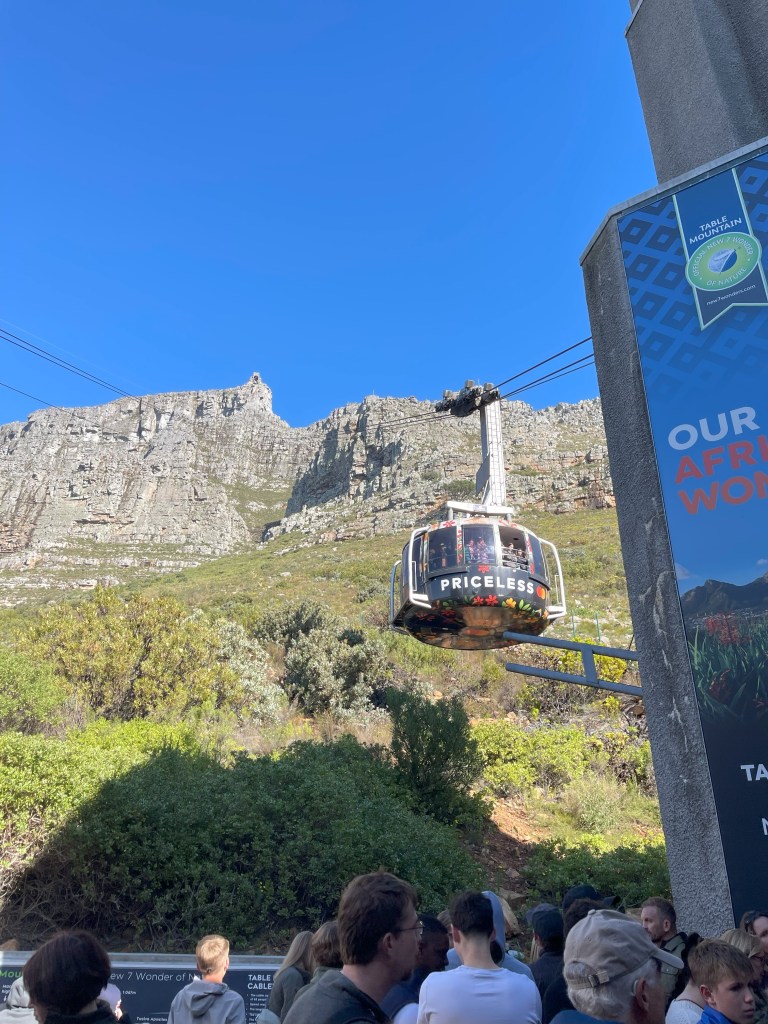 On our last full day in Cape Town, we took the Table Mountain Aerial Cableway to the top of Table Mountain, the famed flat-top mountain that overlooks Capetown. As you ascend on the cable car, views of Lion’s Head, Devil’s Peak, Robben Island, and the V&A Waterfront will become more prominent. The top of the mountain has a picnic area, a café, and Wi-Fi. If you plan on hiking down or hiking in the area, you are best off reserving a ticket for the earlier cableway timings. If you plan on going to the top to soak in the panoramic views, the best time is after 1 p.m. when the crowds start to thin out. I recommend bringing a sweater or light jacket as it can get ten to fifteen degrees cooler at the top, along with windy conditions. The line for tickets for the Aerial Cableway can be long, so purchasing the tickets in advance through the website or mobile app is recommended.