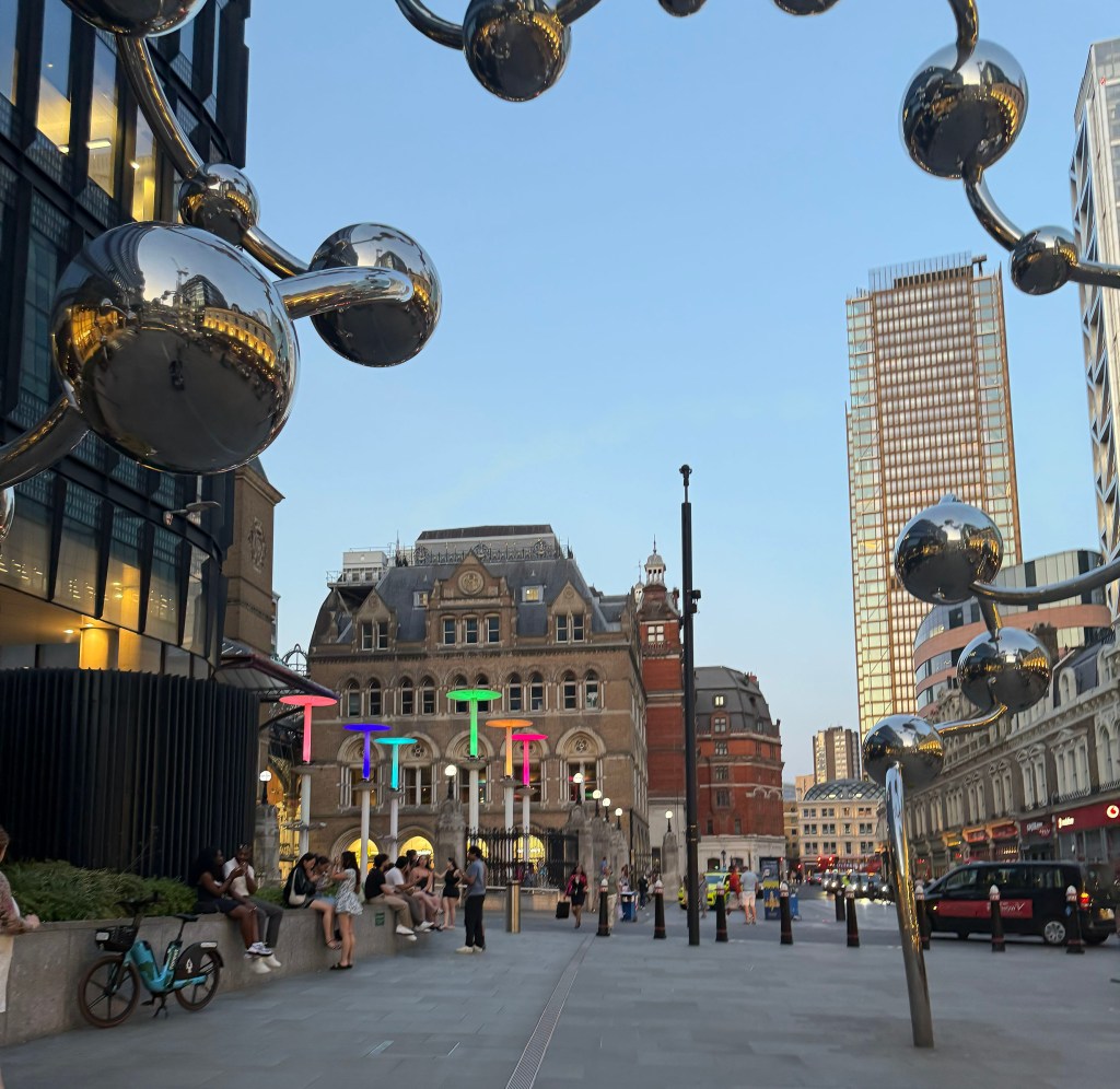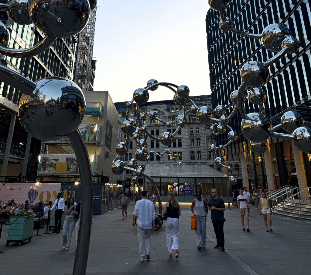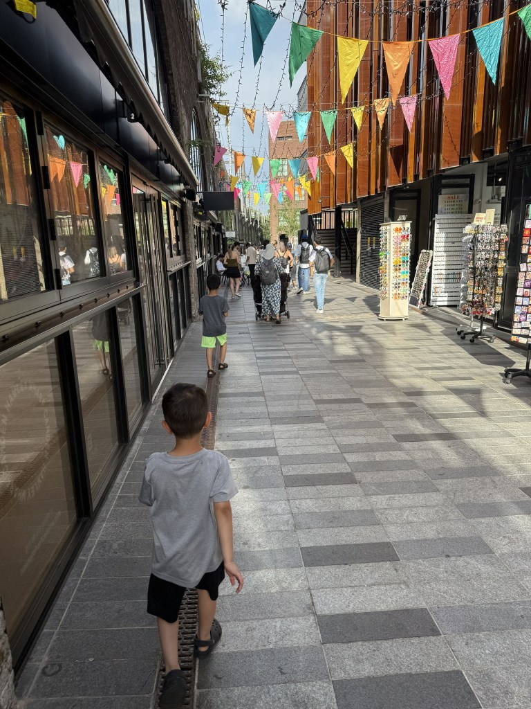 The highlight for our kids was Yayoi Kusama’s Infinite Accumulation, a mesmerizing sculpture made up of gleaming silver spheres linked by twisting metal wires, forming serpentine arches that stretch overhead. Just like in many other historic cities, the best way to truly experience this part of London is simply to wander on foot. We loved this area and were thrilled to step out of Liverpool Street Station to explore.