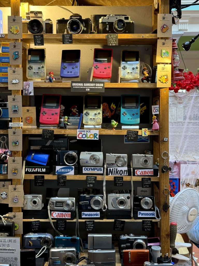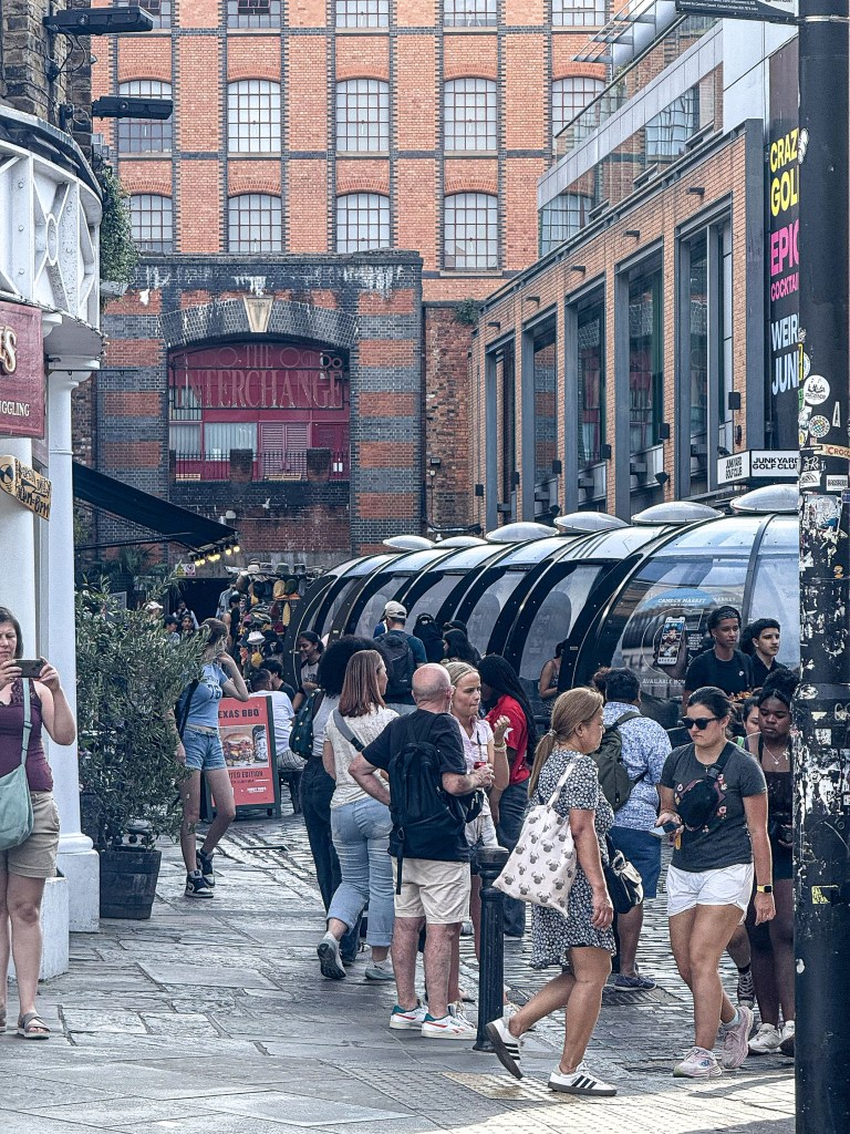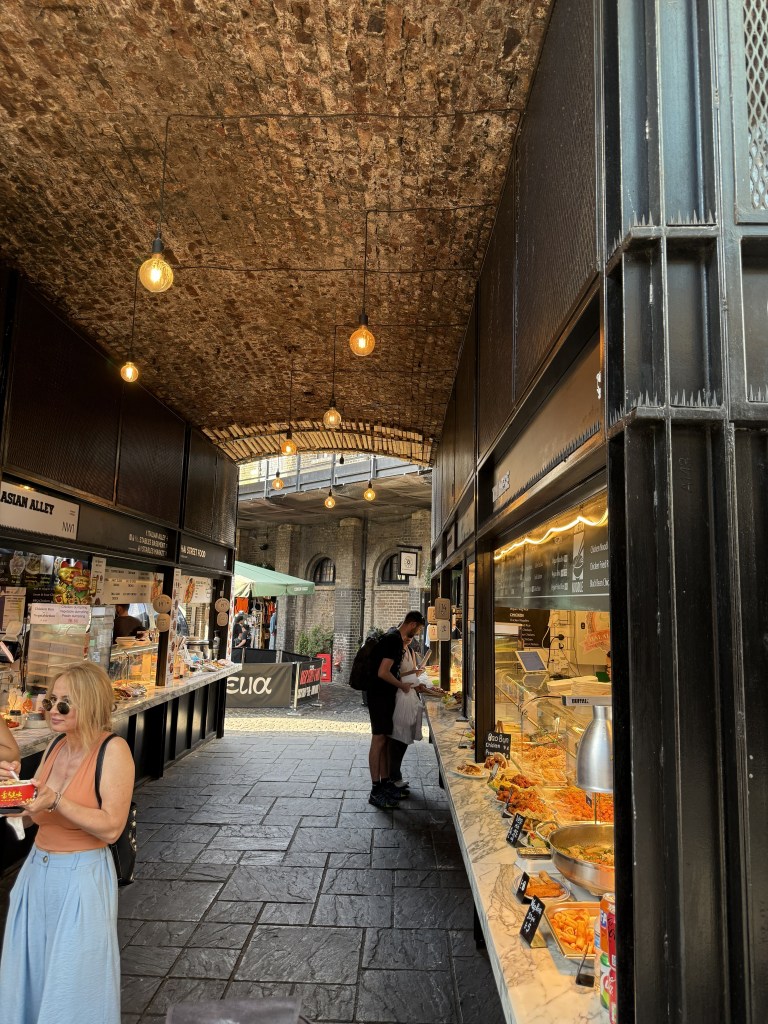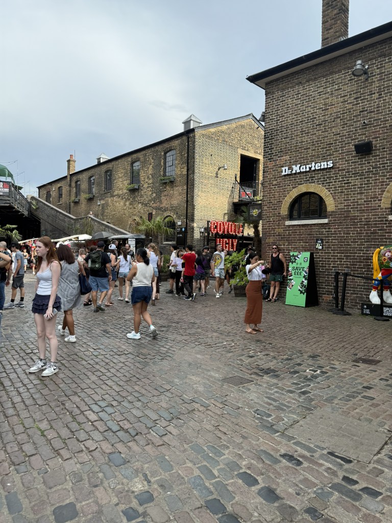 Located in the borough of Camden in Northwest London, Camden Market was one of our favorite places to visit during this trip. It is vibrant, fun, and eclectic, with something for everyone. The market has rows of stalls selling vintage clothes, handmade jewelry, quirky art, and the kind of souvenirs you only find in places that are as vibrant as this one. There was a shop selling old-school items from the 90’s, such as Game Boys, the original Tamagotchis, older Polaroid Cameras, and the large, bulky VHS camcorders that your parents likely had back in the day. In addition to its shops, Camden Market is known for its food selection. Camden has everything from Venezuelan arepas, Japanese ramen, Ethiopian platters, and Spanish churros. You can enjoy your food in one of several igloo-style dining pods.