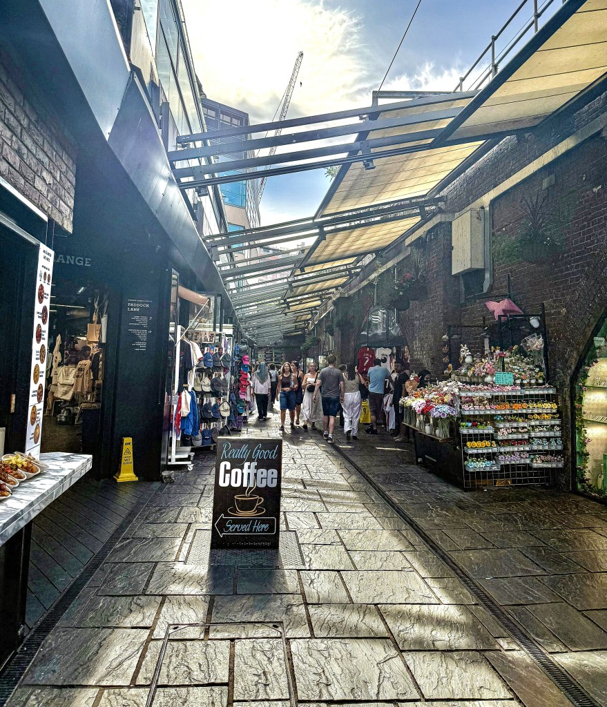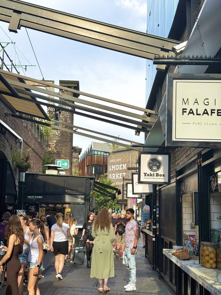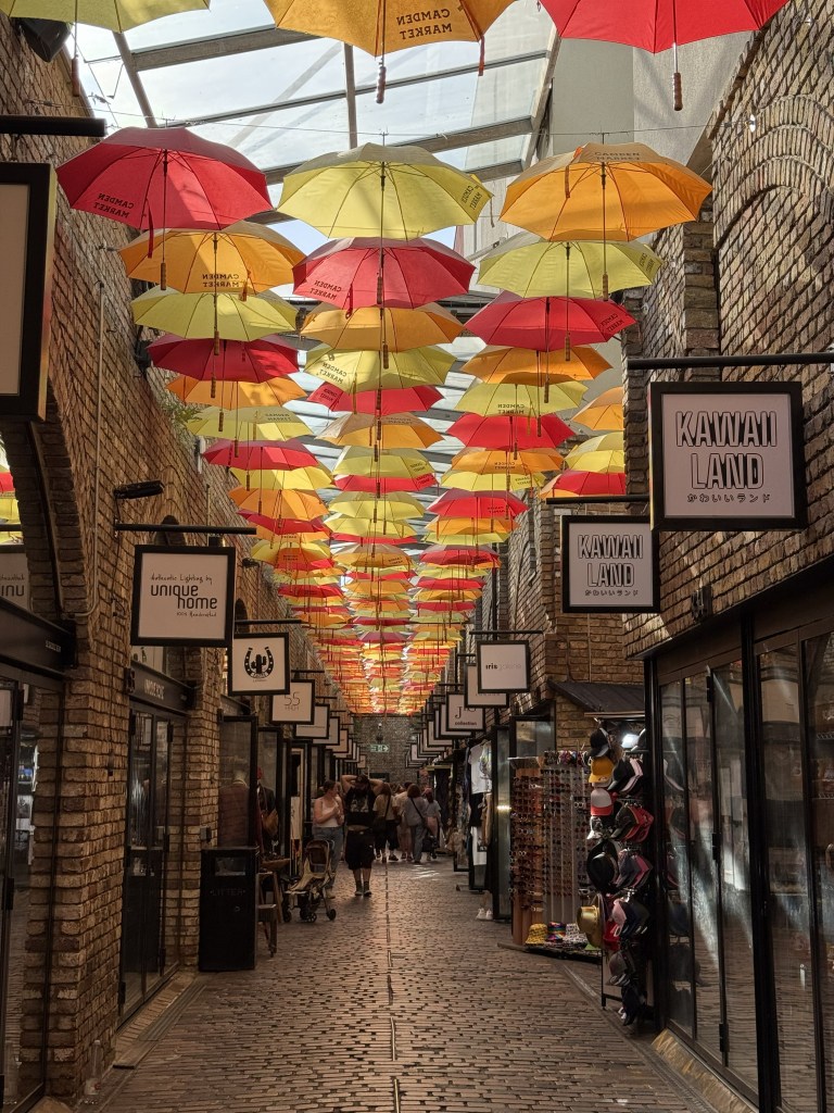 If you cross Chalk Farm Road, you will arrive at an area of Camden Market called Hawley Wharf. This is a relatively new addition to Camden Market, situated along Regent’s Canal. Hawley Wharf is a multi-level food hall with indoor seating, a rooftop terrace, and several international food vendors in an area where you can enjoy your food in a quieter setting. If you’re traveling with younger kids, Hawley Wharf has diaper changing stations and an elevator to accommodate strollers.