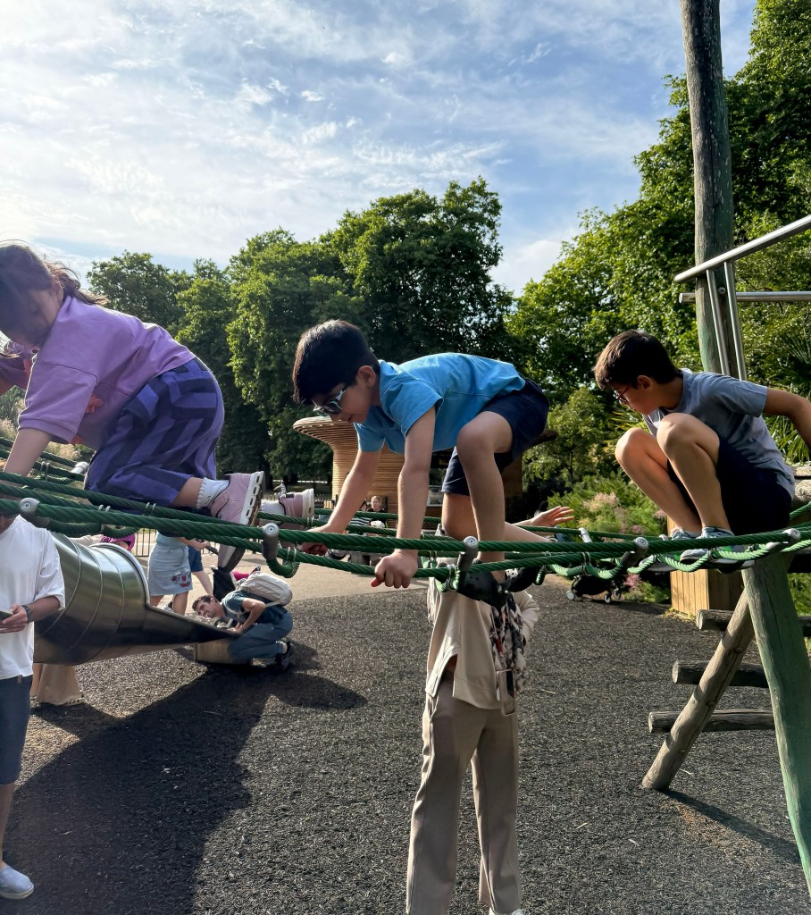 We continued walking north towards one of London’s most famous green spaces, Hyde Park. Spanning 350 acres, Hyde Park is one of London’s largest and most beautiful green spaces, and it’s a perfect place to slow down after a busy day of sightseeing. With wide walking paths, open lawns, and the peaceful Serpentine lake, it feels like a quiet escape right in the middle of the city. The park has a nice playground area with a café on the premises. Our kids got to interact with other kids and really enjoyed the playground and their time here. I would pin Hyde Park as a must-visit when in London.