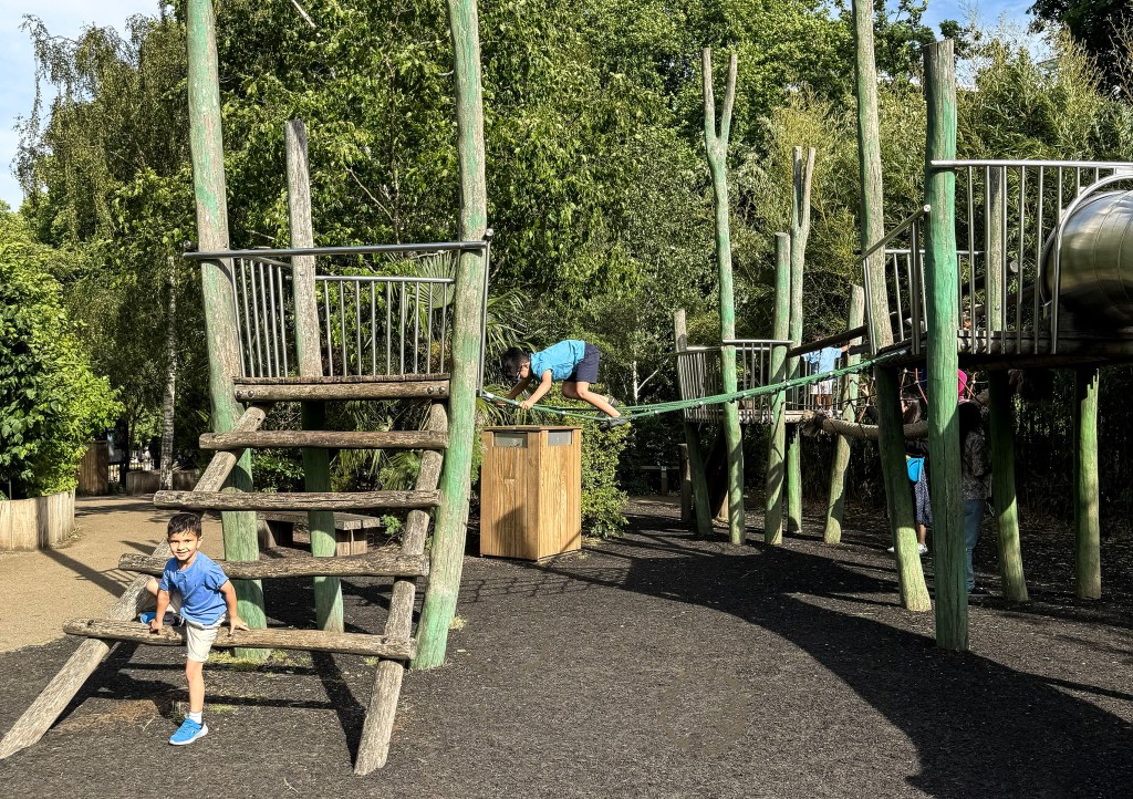 A short walk away, we found the Princess Diana Memorial Playground, where our kids had an absolute blast. The Diana Memorial Playground is an excellent stop for families visiting London, especially if you’re traveling with young kids. Located in Kensington Gardens, this beautifully designed playground was created in memory of Princess Diana and is inspired by Peter Pan. The centerpiece is a huge wooden pirate ship surrounded by sand, giving kids plenty of space to climb, explore, and use their imagination. There are also sensory trails, teepees, swings, and quiet areas for kids who need a break. It’s fully enclosed and staffed, providing an extra layer of security. Staff will not allow adults in the playground area unless they are there with kids. London does a wonderful job of integrating play areas into historic parks, and this is a perfect example. If you are traveling to London with kids, I would make Kensington Gardens and the Diana Memorial Playground a must-visit.