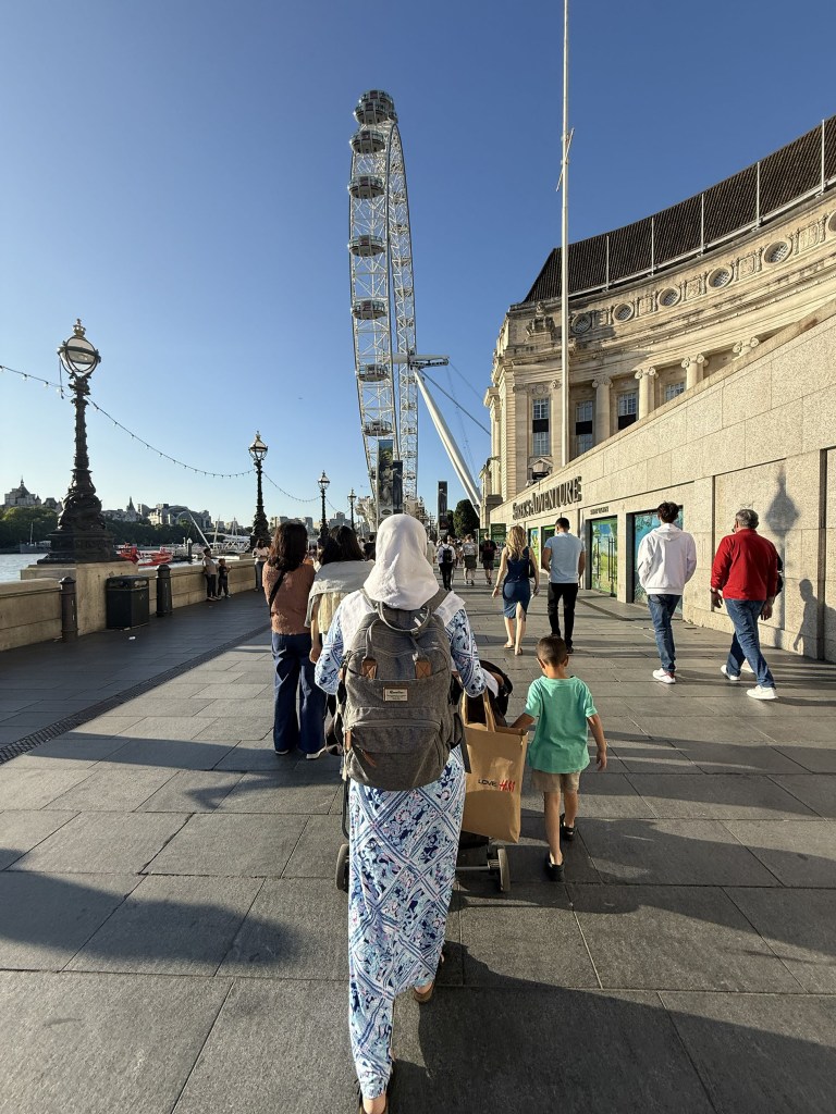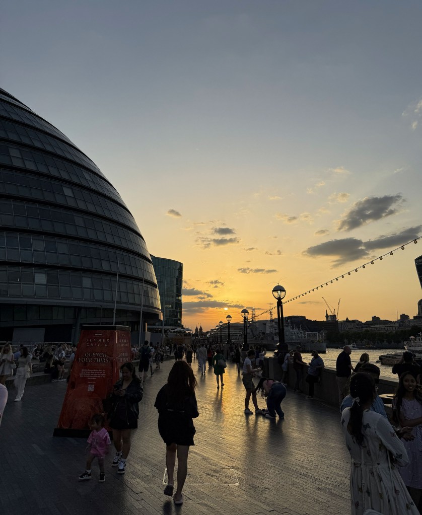 There are plenty of benches and riverside spots to take breaks, grab snacks, or simply sit and people-watch. Cafés and casual food stands nearby make it easy to stop for ice cream or lunch, and the flat pathways are ideal for strollers. To reach the promenade from London Bridge Station, we had to fold our stroller and walk down several stairs, which is something to keep in mind if your children are asleep in it. During the summer, the best time to walk the promenade is about 90 minutes before sunset. The temperatures are comfortable, and the evening sky provides excellent photo opportunities.