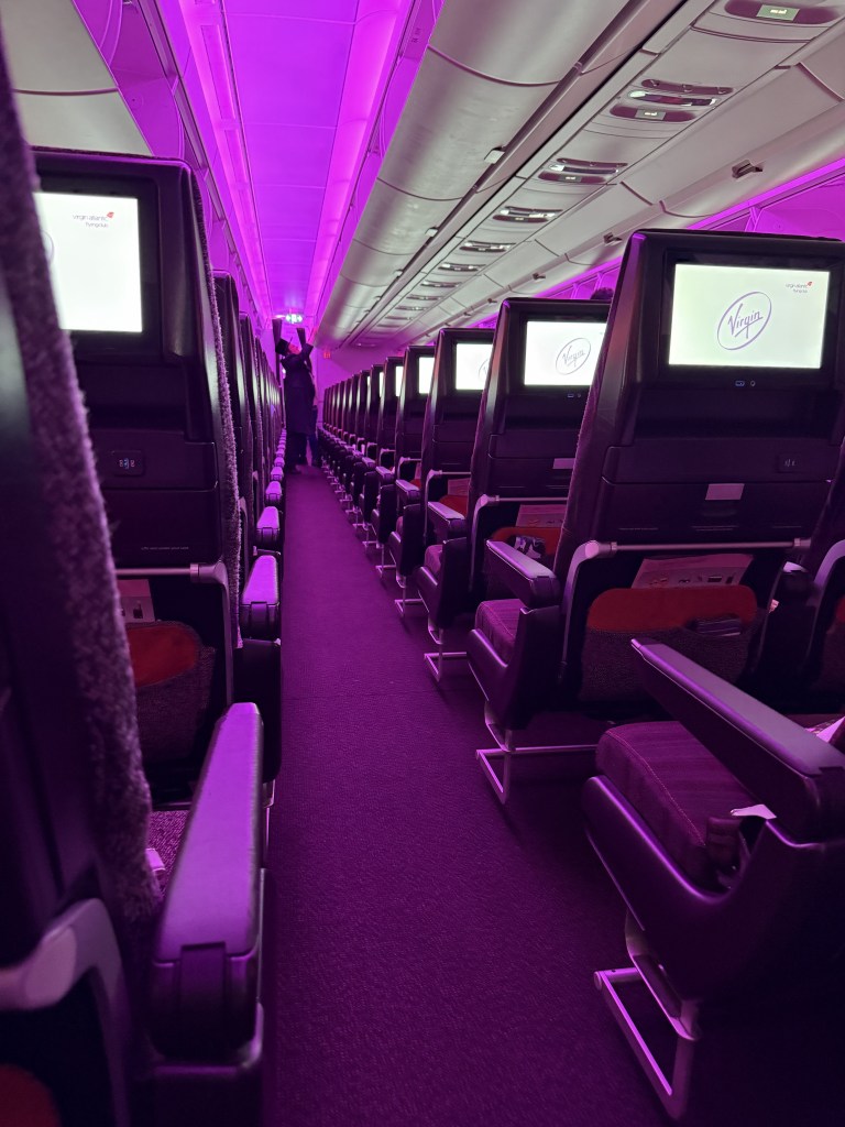We departed New York City (JFK) on Virgin Atlantic’s evening flight to London Heathrow, marking our first experience with the airline. It turned out to be an excellent choice. Virgin’s modern Airbus A350 aircraft offered a comfortable ride, with spacious seating, a robust in-flight entertainment system that kept the kids happily occupied, and ambient purple lighting reminiscent of the now-retired Virgin America brand, one of my favorite domestic airlines prior to their acquisition by Alaska Airlines.
